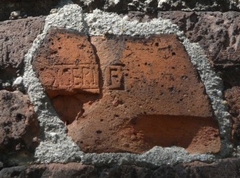 Nijmegen heeft, zoals je misschien wel weet, een bijzonder rijke Romeinse geschiedenis. De Romeinen bouwden, verbouwden of sloopten weer, waardoor er volop bouwrestanten en -afval op en rond de heuvel lag. En waarom moeilijk doen, als het makkelijk kan? Bij herstelwerk werd gewoon van alles gebruikt wat maar binnen handbereik te vinden was. Dus ook dakpannen. Hieronder hebben we een paar dakpannen uitvergroot. Je ziet dat er ook wat op staat; stempels noemen ze dat.